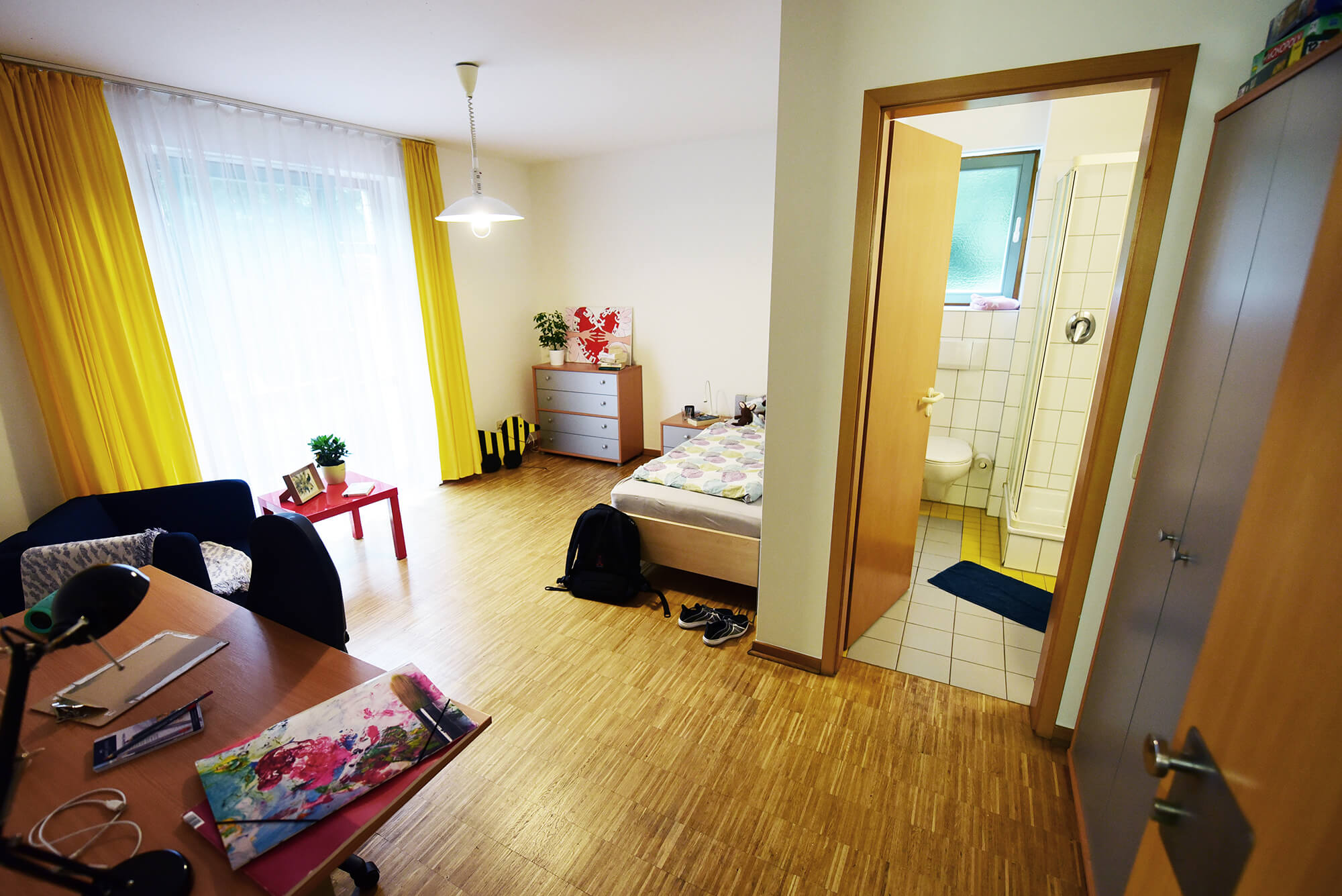 Jeder junge Mensch verfügt über ein eigenes Zimmer mit einem integrierten Bad. Darüber hinaus gibt es in jedem Wohnbereich ein separates Wohn- und Esszimmer, einen Multifunktionsraum sowie das Büro des Betreuer*innenteams.